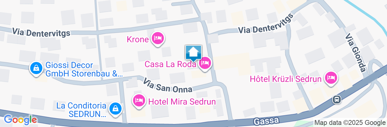Das Haus befindet sich im Zentrum von Sedrun. Einkaufsmöglichkeiten und der Bahnhof befinden sich in unmittelbarer Nähe. Es steht ein Parkplatz direkt beim Haus zur Verfügung.