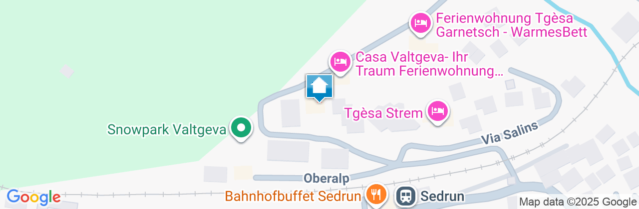 Gemütliche, Ferienwohnung im 1. Stock eines Sechsfamilienhauses in ruhiger Ortsrandlage (50 m oberhalb der Bahnstation Sedrun). 1 Parkplatz gibt es vor dem Haus.