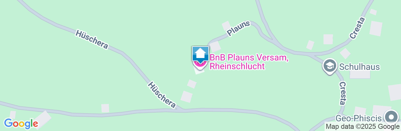 Das Haus befindet sich am sonnigen Dorfrand von Versam, am Eingang zum naturnahen Safiental, sowie am Rande der imposanten Rheinschlucht. Der Umschwung mit Sitzplatz, Sandkasten, Trampolin und Töggelikasten steht zur gemeinsamen Nutzung mit den Eigentümern zur Verfügung. Das Bed and Breakfest liegt an idealer Lage für viele Freizeitaktivitäten zu allen Jahreszeiten. Es ist wenige Gehminuten von der Bushaltestelle «Grosshus» entfernt und liegt an der Veloroute Nr. 2.