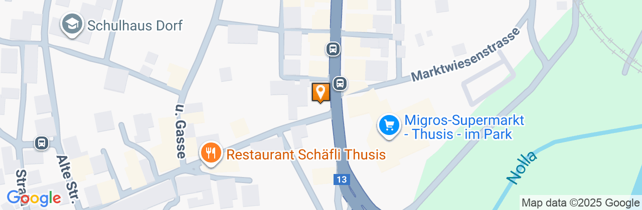 - Treffpunkt bei der Raiffeisenbank, Neudorfstrasse 3, 7430 Thusis